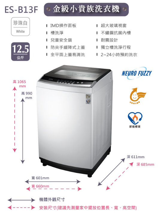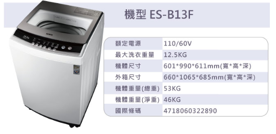 SAMPO聲寶 13公斤定頻直立式洗衣機 ES-B13F
