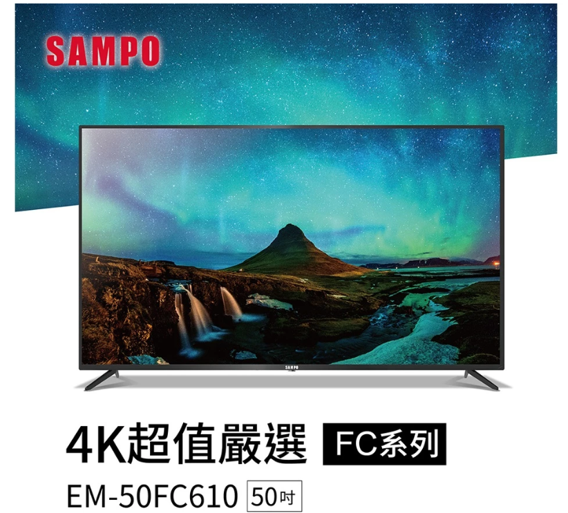 SAMPO聲寶 50吋4K液晶顯示器EM-50FC610(N)+視訊盒MT-610